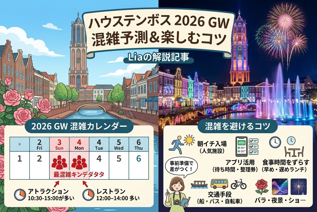 ハウステンボスは「並ぶ場所」と「眺める場所」を上手に切り替えると、同じ混雑日でもかなり快適になります。