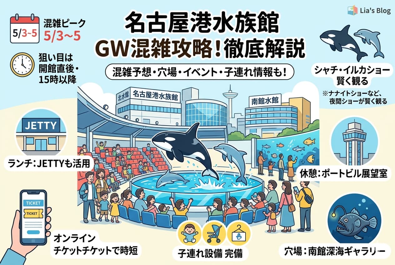名古屋港水族館は見どころが多いぶん、混む日に行くと回り方で満足度が大きく変わる水族館です。