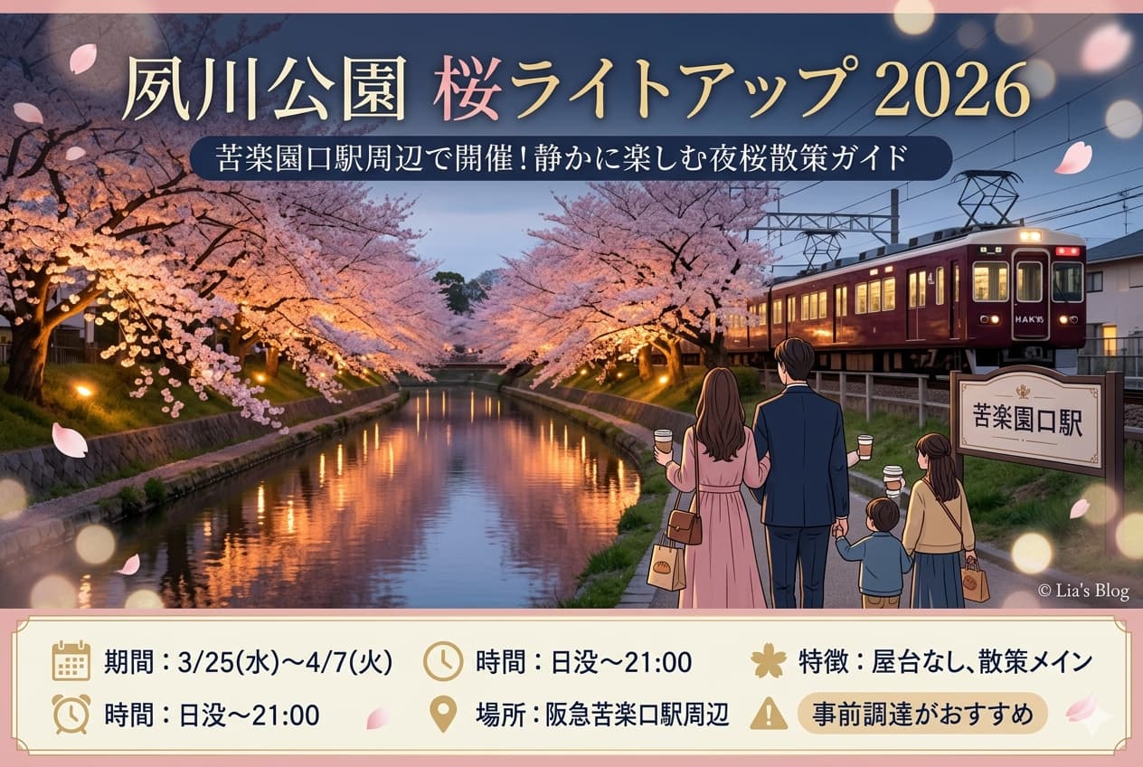 この記事では、2026年3月26日時点で確認できた公式情報をベースに、夙川公園の夜桜とお花見のコツを、やさしく整理していきます。