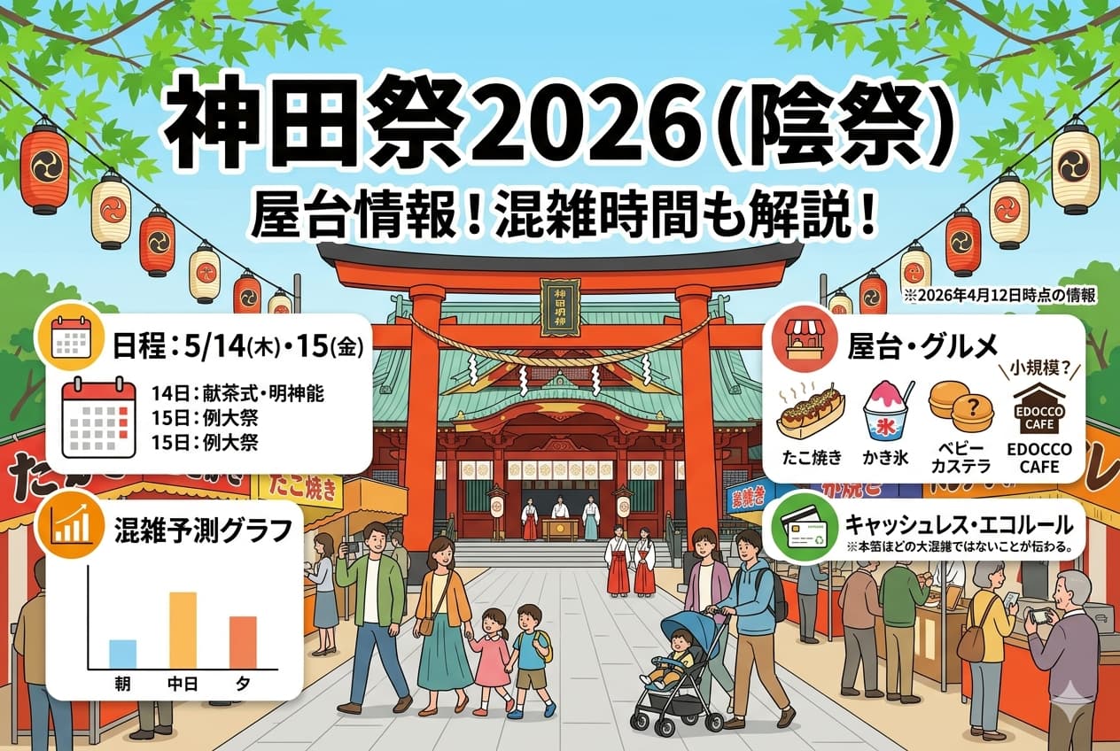 私なら、2026年は「大混雑の祭りを見に行く日」より、神田明神の祭礼の空気をゆっくり味わう日として考えます。