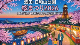 イベント 酒田・日和山公園桜まつり2026 屋台グルメ・ライトアップ・穴場スポット徹底ガイド